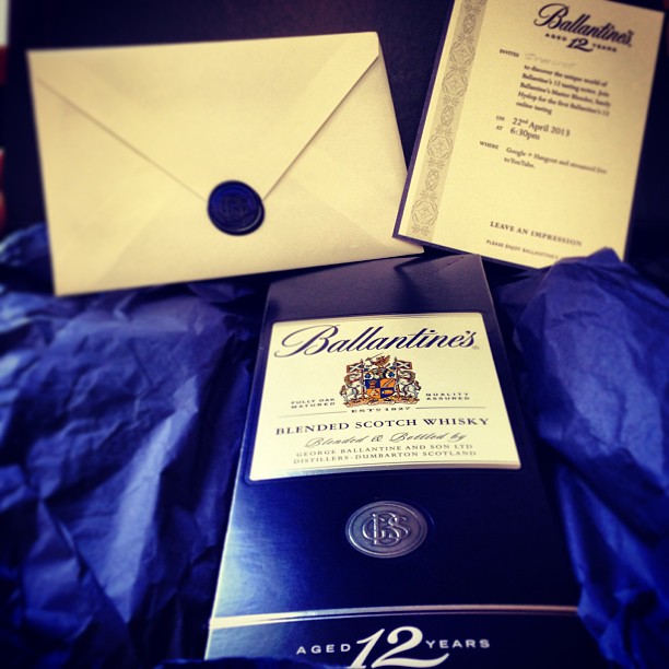 So recently I was involved in a Google+ Hangout (that’s a bit like a Skype or video conference call) with Sandy Hyslop, Ballantine’s Master Blender, and various other renowned figures from the whisky world including Joel Harrison (@joeldram) from Cask Strength and Carry On, Tiger White (@EdinburghWhisky), Tom Thomson (@ifotou) and Mark Gillespie (@whiskycast). This session was to investigate the inner workings of Ballantine’s 12 Year Old, a look at some of the grans and malts that make it up, and the other elements that go to make this creamy smooth blended dram of beauty.